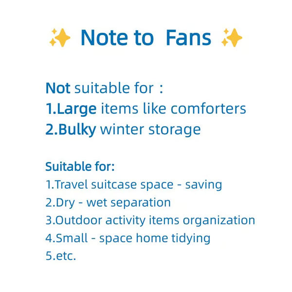 PA+PE Material: The storage bags crafted with a blend of PE+PA materials, ensuring lasting durability and reliable protection for your belongings