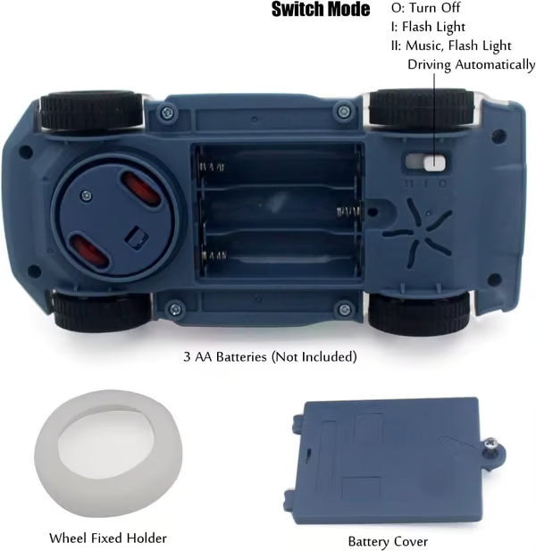 🚔BUMP & GO MECHANISM: Little race car lover transfixed excitement coolness as they observe it. Thanks to the cool bump go action engine, this light-up car toy changes direction when it hits anywhere and continues to go.