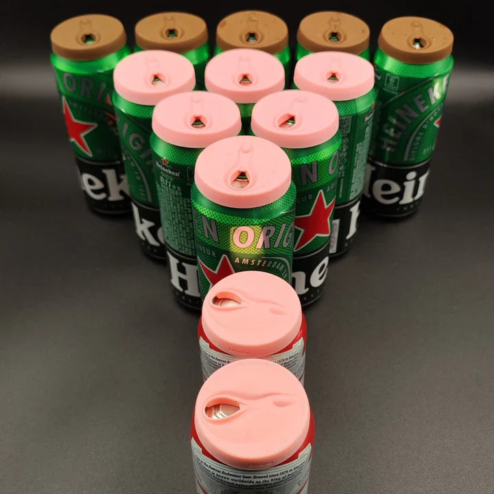 Description: Vagina-shaped lid that fits on top of standard aluminum beverage cans.